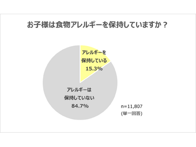 子どもがいる親11,807名に対して、子どもが食物アレルギーを保持しているかを尋ねたところ、15.3%が「食物アレルギーを保持している」と回答しました。