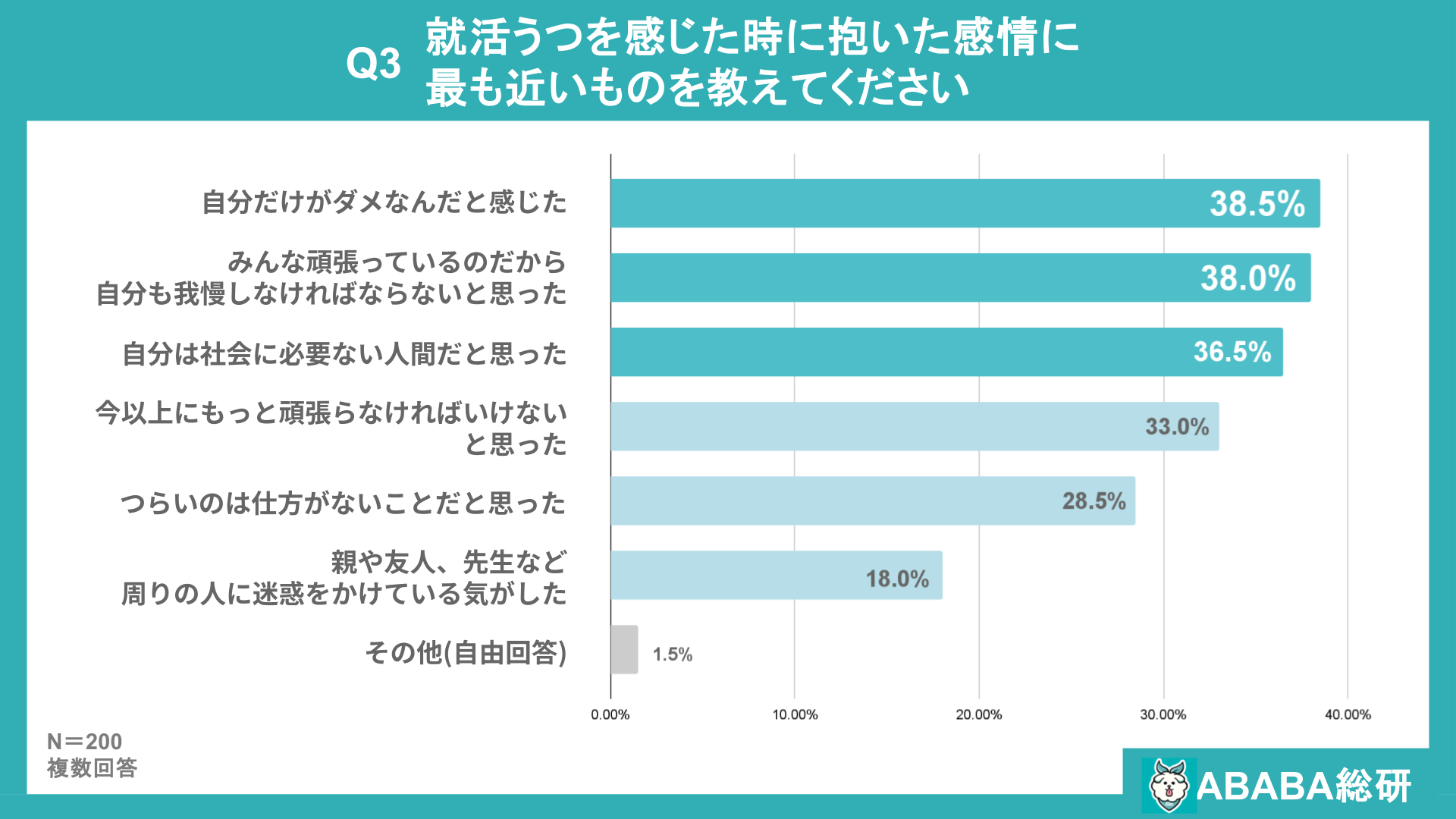 Q3. 就活うつを感じた時に抱いた感情に最も近いものを教えてください