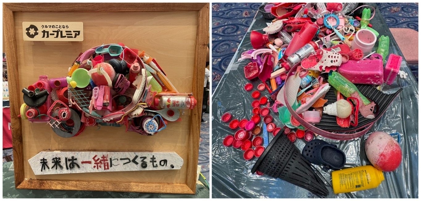 当社ブースでは、石垣の海に漂着した海ごみを材料とし、ご来場者全員で作り上げるアート作品の製作を実施しました。多くのお子様連れのご家族がブースに立ち寄り、思い思いに海ごみを配置し、協力して一つの作品を創り上げていきました。完成したアート作品は、参加者一人ひとりの環境保護への願いが込められた、大変素晴らしいものとなりました。この活動を通じて、海洋プラスチック問題という身近な環境課題に対し、多くの方が楽しみながら意識を高めるきっかけとなったことを確信しております。