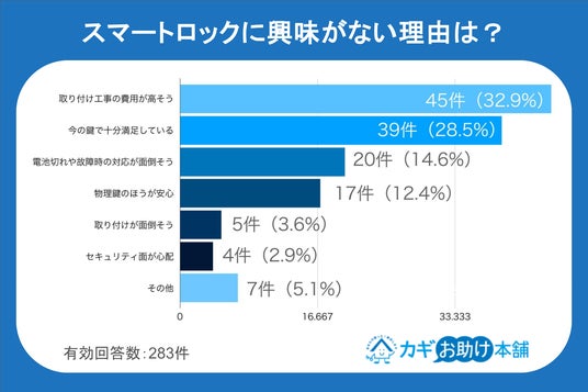スマートロックに対する関心の有無にかかわらず、「費用」や「故障時の対応」がネックになっているほか、そもそも