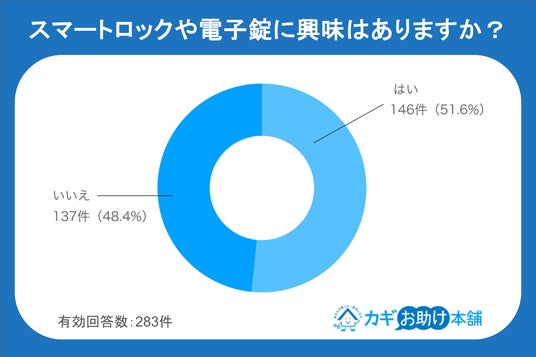 カギお助け本舗」では、鍵トラブルを経験したことのある全国の男女283名を対象に、「鍵トラブルとスマートロックに関する意識調査」を実施しました。
