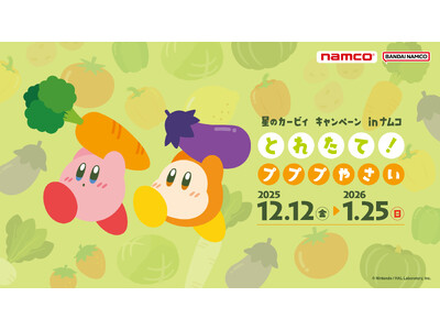 株式会社バンダイナムコエクスペリエンスは、『星のカービィキャンペーン in ナムコ とれたて!プププやさい』を、2025年12月12日(金)から2026年1月25日(日)まで、全国のアミューズメント施設「ナムコ」および「ナムコオンラインクレーン」(以下ナムクレ)で開催します。