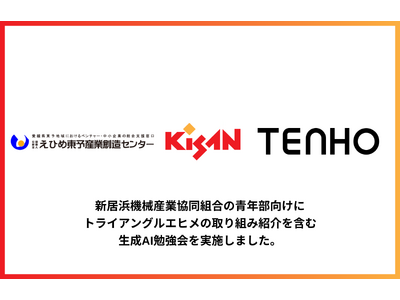 生成AI活用の内製化支援事業を展開する株式会社TENHO(本社:東京都渋谷区、代表取締役:田村 允・土田 龍矢、以下「当社」)は、公益財団法人えひめ東予産業創造センター(所在地:愛媛県新居浜市、理事長:古川 拓哉)と連携し、新居浜機械産業協同組合(理事長:萩尾 広典)青年部を対象に、トライアングルエヒメの取り組み紹介を含む生成AI勉強会を実施しました。