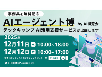プログラミングスクール「テックキャンプ」を運営する株式会社div(本社:東京都港区、代表取締役社長:石原 圭)は、2025年12月11日(木)・12日(金)に御茶ノ水ソラシティカンファレンスセンター 2Fで開催される展示会「AIエージェント博 by AI博覧会」に出展します。