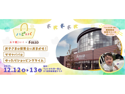 フォレオ大津一里山は、これまでも季節イベントやキッズワークショップなど、地域の子育て世帯に寄り添った取り組みを数多く展開してきた商業施設です。今回の『ハピいく』は、同施設として初めての“一時預かりサービス導入”となる試みであり、年末の来館需要が高まるこの時期に合わせ、保護者の利便性向上と新たな価値提供を目指すものです。