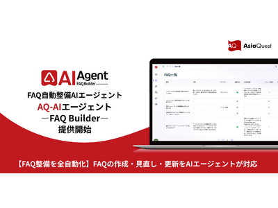 アジアクエスト(本社:東京都文京区)は、自社で開発・提供しているAIエージェントを搭載した業務効率化サービス「AQ-AI エージェント」において、これまで人手で行っていた FAQの関連作業をAIが一貫して自動化する『AQ-AIエージェント FAQ Builder』のサービス提供を開始しました。