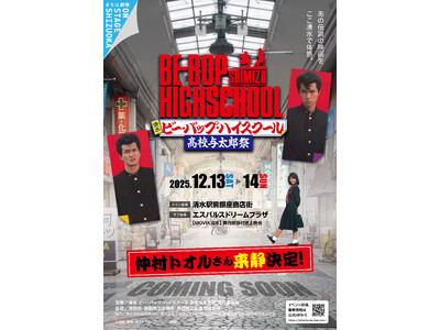 きうちかずひろによる同名漫画を原作に、清水宏次朗・仲村トオルが W 主演し、10 代の少年たちから圧倒的な支持を得て全 6作が制作された実写映画「ビー・バップ・ハイスクール」シリーズ。 第一作「ビー・バップ・ハイスクール」(1985)の公開40周年を記念して、2025 年12月13日(土)・14 日(日)に、映画のロケ地となった静岡県静岡市清水区にて周年イベントを行います。