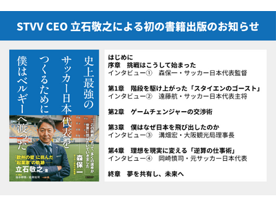サッカーベルギー1部リーグ シント=トロイデンVV(以下、STVV)のCEOを務める立石敬之が、自身のキャリア、日本サッカーへの思い、そして欧州で挑み続けるビジョンを綴った初の著作『史上最強のサッカー日本代表をつくるために 僕はベルギーへ渡った』が、12月22日(月)に日経BPより出版されます。なお、現在はオンラインで予約を受付中です。