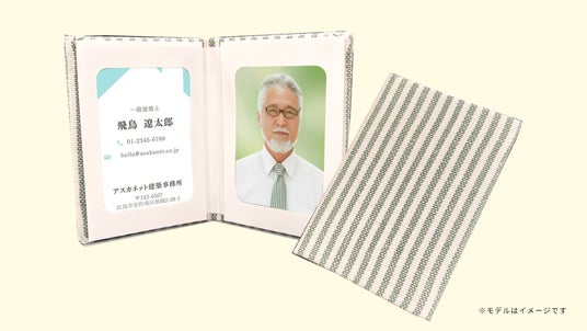 アスカネットでは2025年6月に「遺す写真展」を開催し、日々遺影加工に従事するデザイナーやオペレーターが、新しい「写真の残し方」として作品を制作・展示いたしました。その作品のひとつとして、既存の「アスカカードミニ」を故人様の遺品の洋服で作成したオリジナルバージョンを展示したところ、多くのお客様から商品化のご希望をいただき、この度商品化に至りました。
