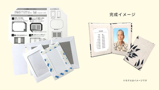 故人様の遺品である洋服・ネクタイ生地・着物などを利用して、30分程度で簡単にオリジナルの写真フレームを作成することができます。
