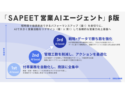 株式会社Sapeet(本社:東京都港区、代表取締役社長:築山 英治、以下Sapeet)は、専門家のナレッジをAIで再現・活用するExpert AI事業の一つとして、BtoB(企業間取引)営業組織向け「SAPEET 営業AIエージェント」β版を、2026年1月より提供開始します。