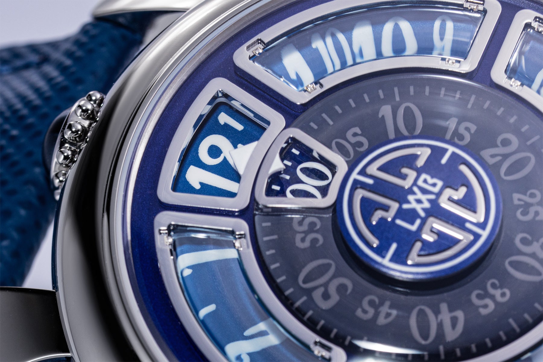 文字盤のベースにラピスラズリを巧みに取り入れ、インデックス全体にスーパールミノバを採用し、夜空を思わせる深いブルーが夜光表示と相まって、美的かつ象徴的な輝きを放つオブジェへと変貌させています。