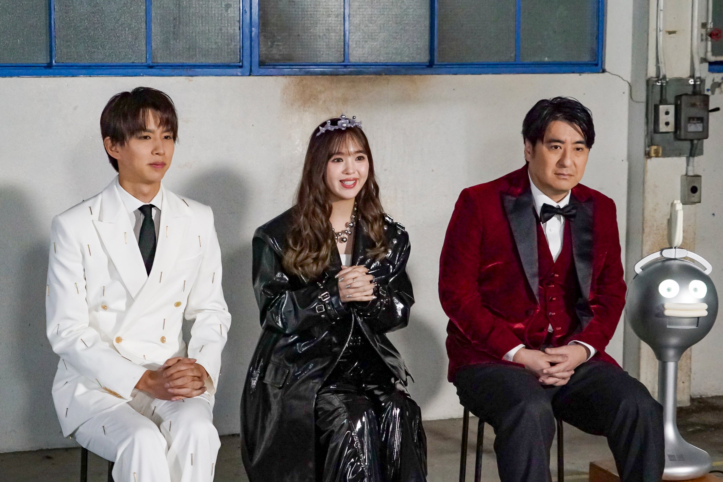 「PACHI-PACHI-7」のメンバーである、はじめしゃちょーさん、佐久間宣行さん、ビッグクラッピーは前作に続いての出演で、すでにリムジン内のシーンでも共演していたため和気あいあいとした雰囲気でした。佐久間さんがYouTubeでも活躍していることもあり、その分野で“先輩”となるはじめしゃちょーさんと話が弾んでいる様子。今作は大規模な美術セットが用意され、大人数のスタッフが関わっている撮影だったため、イスに拘束されたままの待ち時間にも「映画みたいでヤバいね」と話していました。