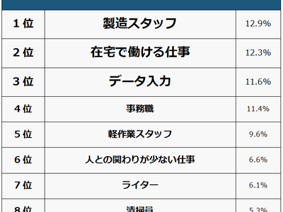 ・メンタルが弱い人に向いている仕事1位は「製造スタッフ」