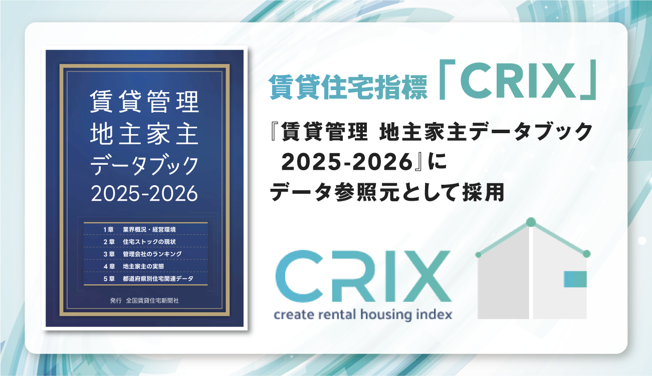 日本情報クリエイト株式会社(本社:宮崎県都城市、代表取締役社長:辻村 都雄、証券コード:4054)が提供する賃貸住宅指標「CRIX(クリックス)」が、株式会社全国賃貸住宅新聞社が2025年10月に発刊する『賃貸管理 地主家主データブック2025-2026』において、複数のデータのうちの一つとして採用されたことをお知らせいたします。