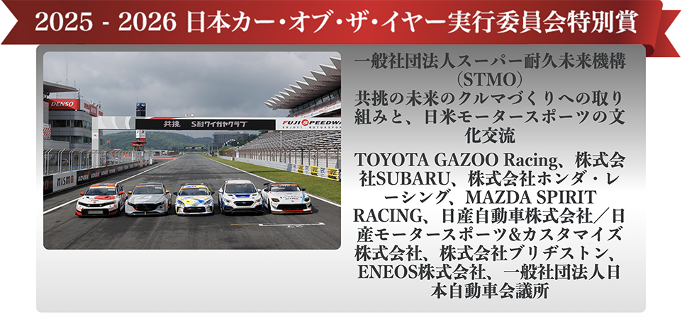 スーパー耐久レースを運営する STMO は、2021年(当時:スーパー耐久機構)、試作車両などの参戦を可能にする「ST-Qクラス」を新設した。これにより、TOYOTA GAZOO Racing、株式会社SUBARU、株式会社ホンダ・レーシング、MAZDA SPIRIT RACING、日産自動車株式会社/日産モータースポーツ&カスタマイズ株式会社が試作車両を投入し、カーボンニュートラル社会の実現に向けて、株式会社ブリヂストン、ENEOS株式会社とともにカーボンニュートラル燃料や水素燃料などを活用した先進的な取り組みを開始した。さらに 2025年には、日本自動車会議所とともに、アメリカンモータースポーツの象徴である NASCAR のデモランなど、国際交流の新たなステージを切り開き、モータースポーツを通じて日米の文化交流を促進する「ST-USAクラス」を新設した。2021年から続く革新的な試みと、2025年の新たな挑戦は、モータースポーツの未来を示す取り組みとして高く評価される。