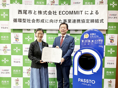 循環型社会に向けた不要品の回収・選別・再流通のインフラを構築する株式会社ECOMMIT(本社: 鹿児島県薩摩川内市、代表取締役 CEO:川野 輝之、以下「ECOMMIT」)と、愛知県西尾市(市長:中村 健)は地域の廃棄物削減化及び分別意識の醸成を図ることを目的として「循環型社会形成に向けた事業連携」に関する協定を締結いたしました。