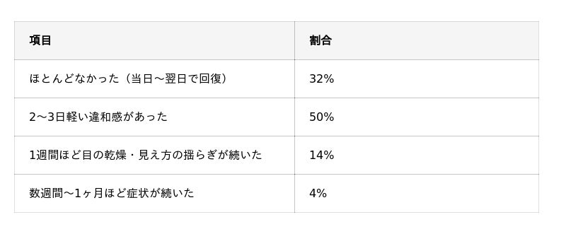 ただし、ドライアイなど目に負担がかかる可能性もあるため、施術を検討する際は医師と十分に相談することが重要です。