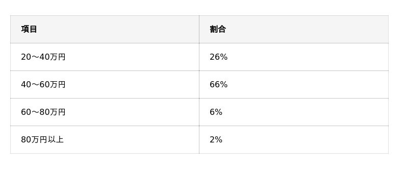 「40~60万円」と答えた人が最も多く、全体の