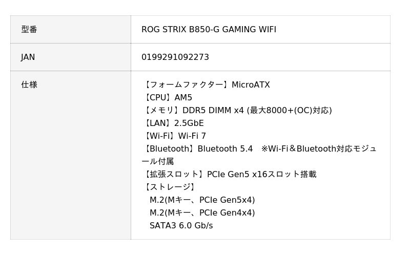 シー・エフ・デー販売株式会社(社長:三谷弘次、本社:愛知県名古屋市)が代理店を務めますASUSブランドの新製品として、AMD B850チップセット搭載マザーボード『ROG STRIX B850-G GAMING WIFI』を発売いたします。
