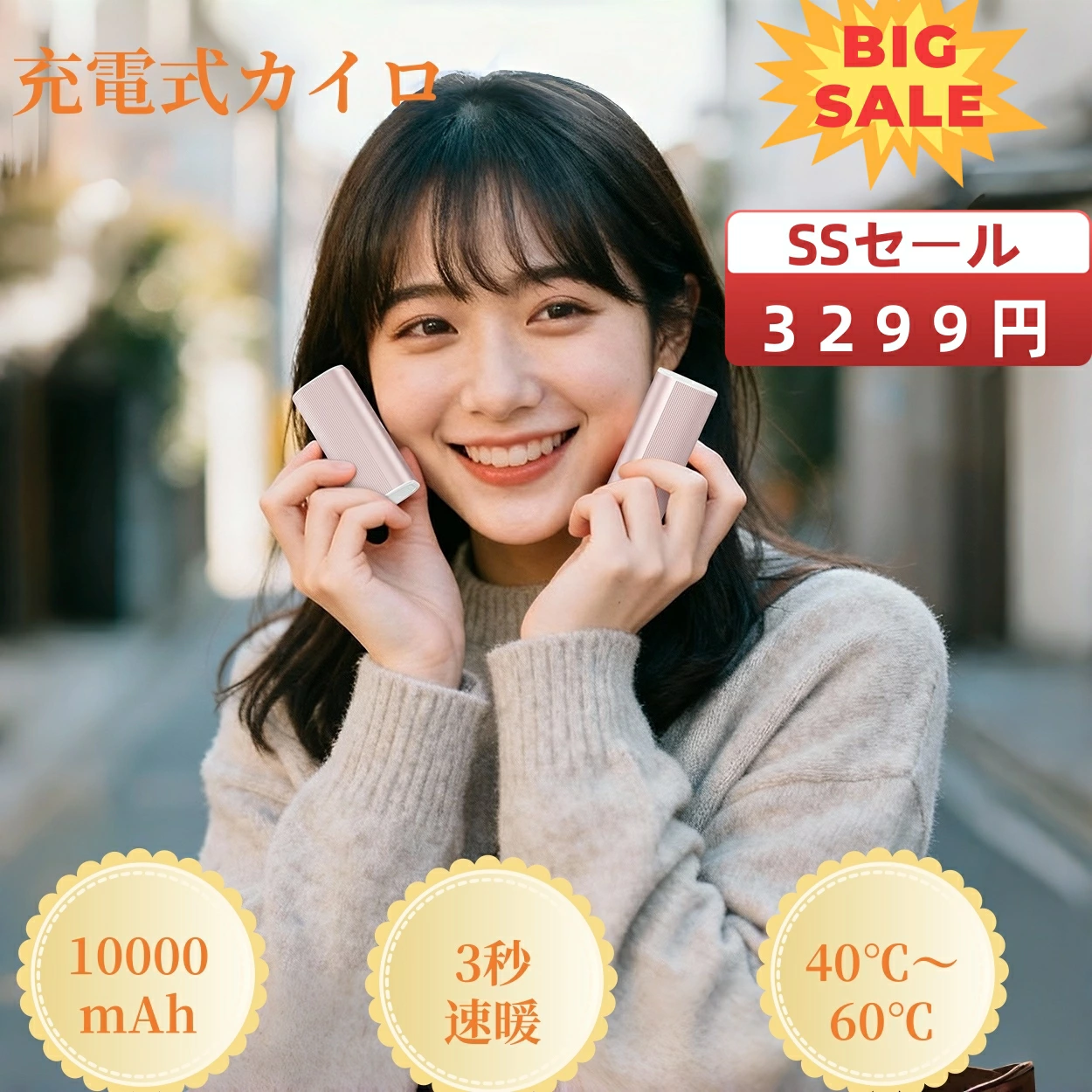 冬の対策-繰り返してカイロ 充電式 ハンドウォーマー 電子式 (2個セット・10000mAh大容量・充電と収納スタンド付)