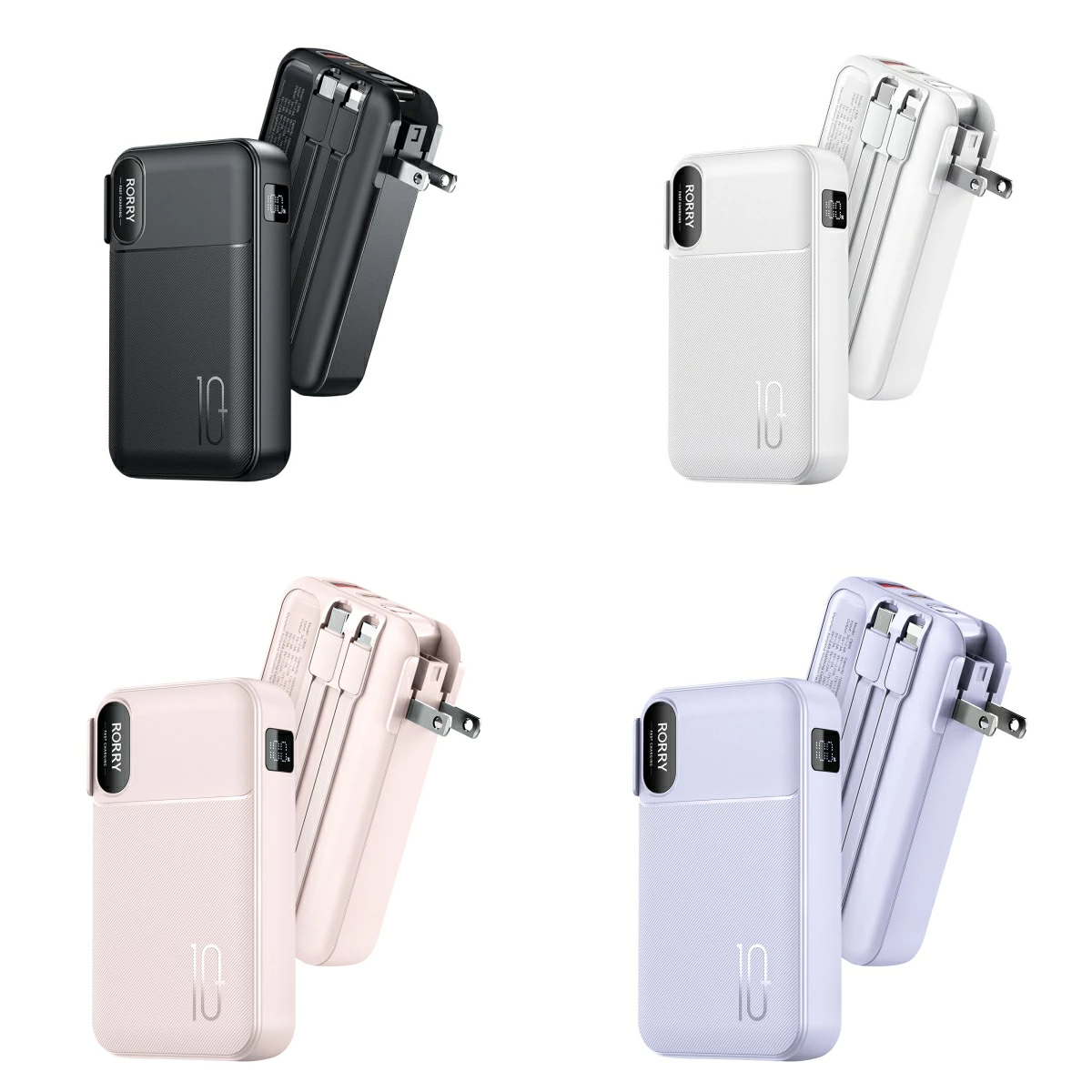RORRYモバイルバッテリー コンセント一体型 10000mAh ACプラグ付き 携帯バッテリー(CB06)
