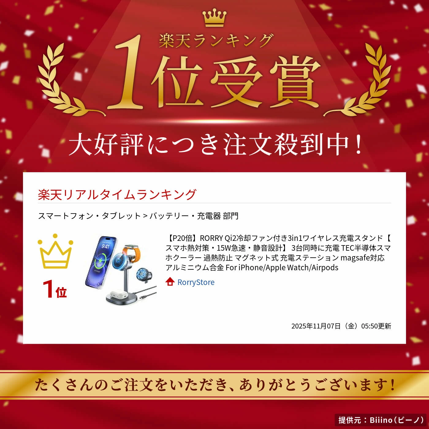 RORRY Qi2冷却ファン付き3in1ワイヤレス充電スタンド スマホ熱対策・15W急速・静音設計(A8)