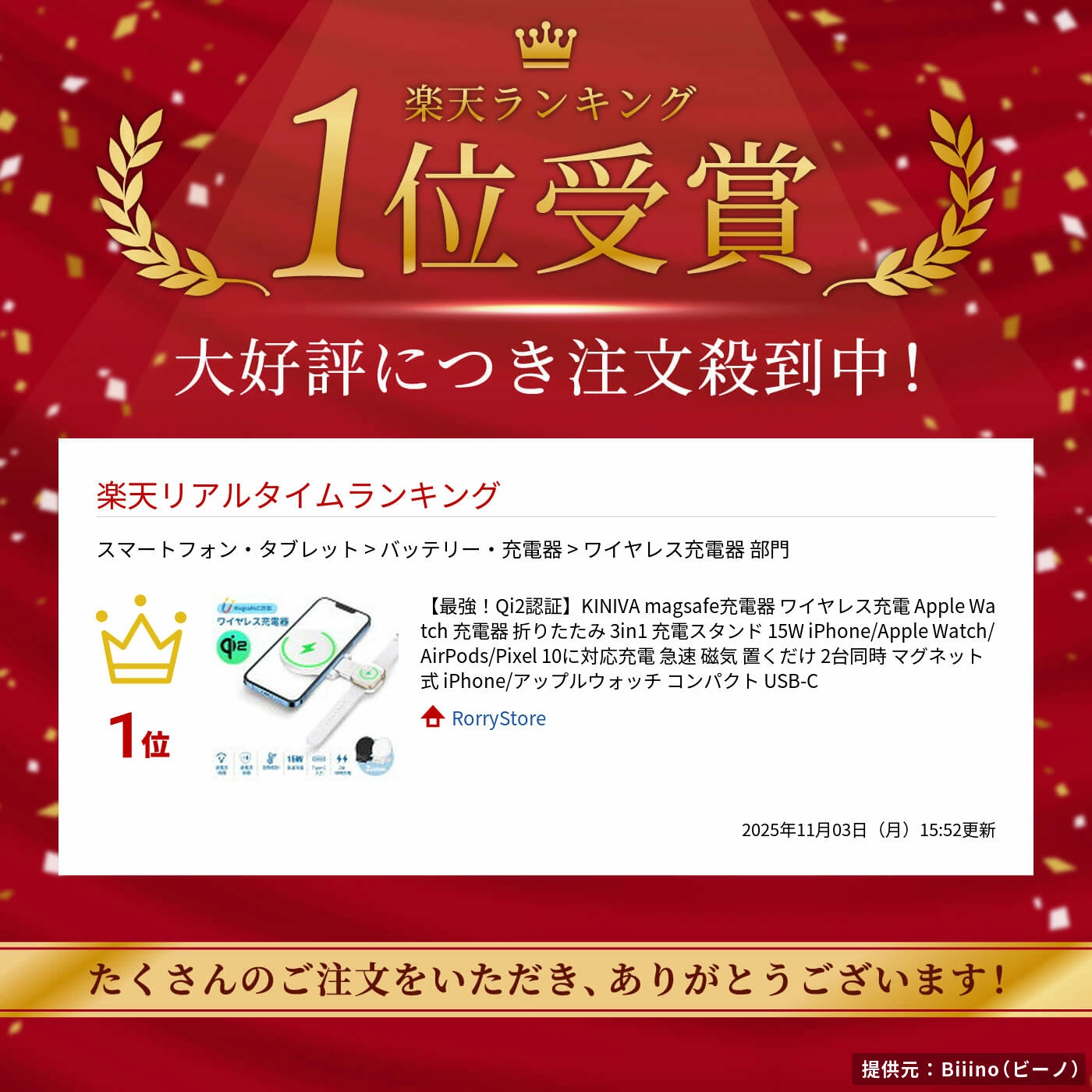 RORRY ワイヤレス充電器 magsafe充電器 apple watch 充電器【超小型・qi2認証・超速い充電】