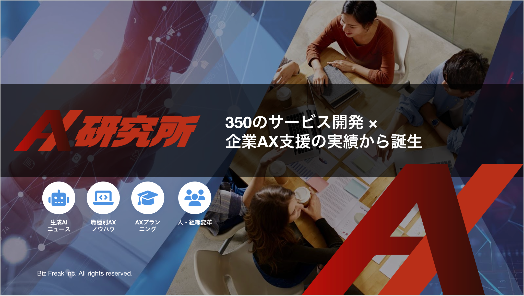 『AX研究所』を正式リリースしました。本サービスは、企業のAI活用=AX(AIトランスフォーメーション、以下AX)を加速させることを目的に開発されたものです。