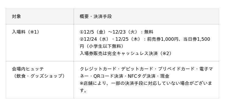 (※1)今年は12月24日・25日の2日間限定で、混雑緩和を目的に入場券の販売を実施。