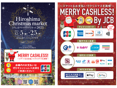 株式会社ジェーシービー(本社:東京都港区、代表取締役会長 兼 執行役員社長:二重 孝好、以下:JCB)は、2025年12月5日(金)から25日(木)まで開催する「ひろしまクリスマスマーケット2025」に協賛し、会場内全ヒュッテへキャッシュレス環境を提供するとともに、入場券販売における完全キャッシュレス決済の実現を支援いたします。