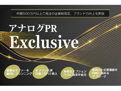 「アナログPR Exclusive」は、企業としてのブランド価値や社会的認知度を高められる特別パッケージとして開発されました。