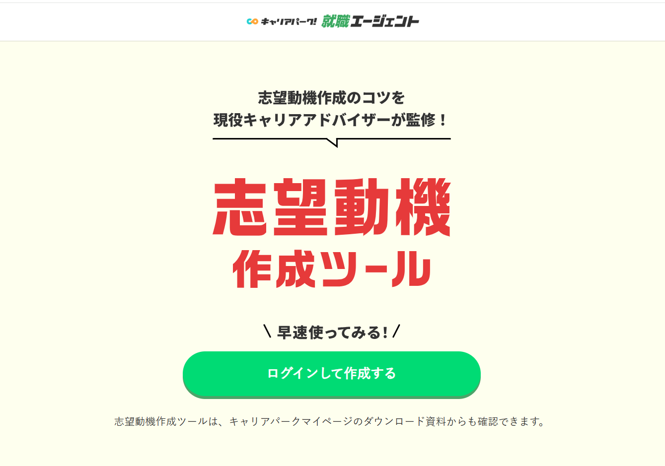 https://careerpark.jp/tools/careerpark_agent/motivation_ai※使用には「キャリアパーク!」 へのログインが必要です。