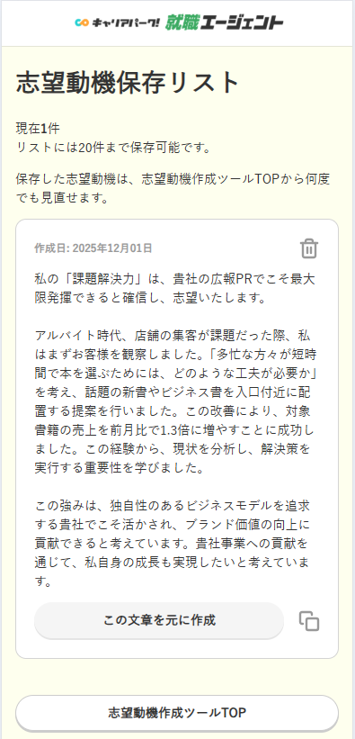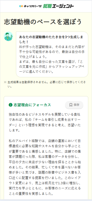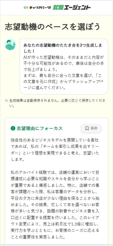- 志望動機をブラッシュアップして保存