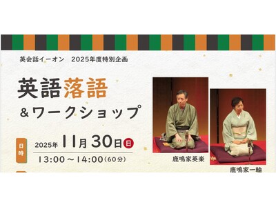 英会話教室を運営する株式会社イーオン(本社:東京都新宿区、代表取締役社長:重野卓、以下「イーオン」)は、2025年11月30日(日)に一般社団法人英語落語協会の鹿鳴家英楽さん、鹿鳴家一輪さんをお迎えし、生徒様参加型イベントとして「英語落語&ワークショップ」を開催しました。