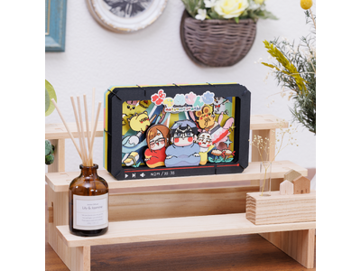 ペーパーシアターはレーザーで精密にカットされた色紙や木を重ね合わせて、キャラクターの名シーンを作り上げるペーパークラフトキットです。パーツをカッターナイフで切り離し、接着剤で貼り付けて組み立てるだけで簡単に奥行きの感じられるアートを作ることができます。現在は、80キャラクター・計350種類以上の商品を展開中。大好きなキャラクターの名場面作りにチャレンジしてみよう!