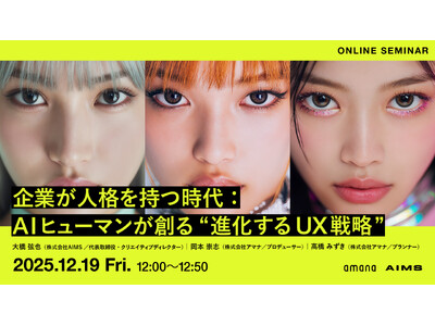 コミュニケーション変革をクリエイティブで実現する株式会社アマナ(本社:東京都品川区、代表取締役社長:金子剛章、以下「アマナ」)は、2025年12月19日(金)、「企業が人格を持つ時代:AIヒューマンが創る“進化するUX戦略”」をテーマにウェビナーを開催します。