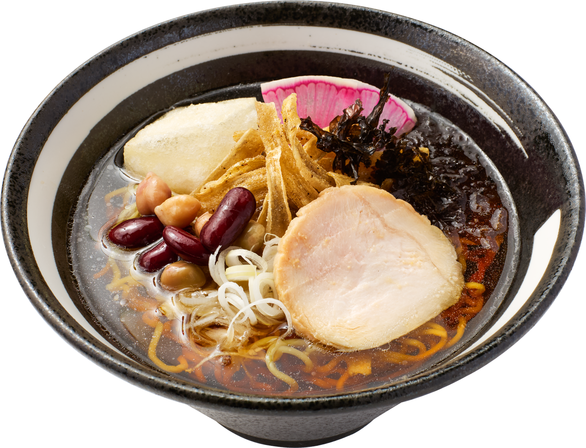 醤油味の「和」は、日本のやさしさを一杯に込めた、まろやかな醤油らーめん。ハラール認証醤油を使用し、野菜だしのうま味とコクを引き出しました。トッピングは、鶏胸チャーシュー・紅芯大根・ミックスビーンズ・ごぼうチップス・揚げ餅・ばらのり・ネギの7種類。 日本を感じる彩り豊かなトッピングが特徴です。