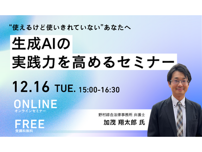 生成AIの導入を検討中の方、活用を軌道に乗せたい方にとって、実践的なヒントが得られる90分!