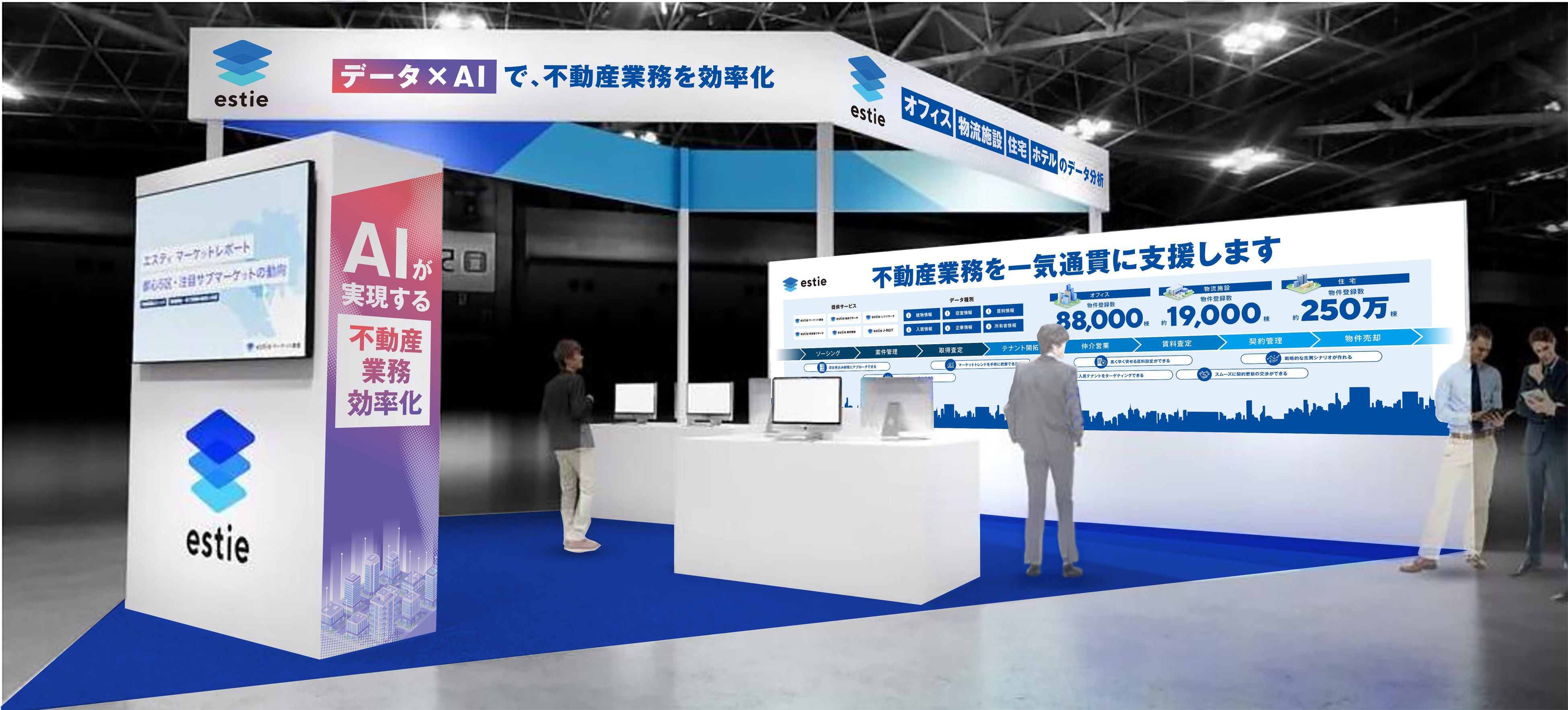 estieは本展示会において、商業用不動産データ分析基盤「estie マーケット調査」をはじめとする全提供サービスを展示し、最新AI活用機能をご覧いただけるブースを展開します。