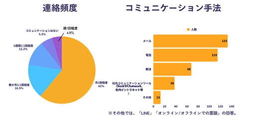 ▶連絡頻度は「月1回程度」が半数以上と最も多く、「数か月に1回程度」と合わせると77.5%となり、“こまめ”な連絡ではないと捉えられる。
