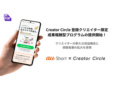インフルエンサーマーケティングプラットフォームを中心とした様々な事業を展開する株式会社BitStar(本社:東京都渋谷区、代表取締役 社長執行役員CEO:渡邉拓)は、KDDI株式会社(本社:東京都港区、代表取締役社長 CEO:松田 浩路、以下 KDDI)が提供するショート動画プラットフォームau Shortとの連携により、「Creator Circle」登録クリエイター限定で参加できる「au Short投稿プログラム」の提供を開始しました。