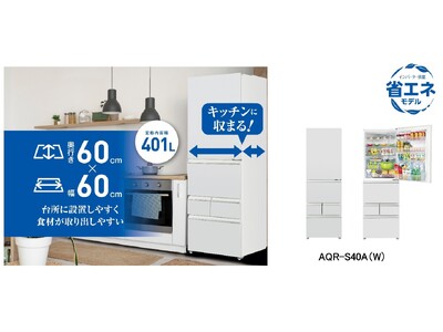 アクア株式会社(本社:東京都中央区、代表取締役社長 兼 CEO:杜 鏡国)は、奥行60cm×幅60cmのコンパクト設計ながら定格内容積401Lの大容量を実現した5ドア冷凍冷蔵庫「AQR-S40A」を、2025年12月19日(金)より順次発売いたします。