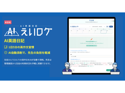 産経ヒューマンラーニング株式会社(本社:東京都新宿区、代表取締役:中谷友紀、以下「当社」)は、 AI英語日記サービス「えいログ」の提供を、2026年4月より開始いたします。本サービスは、生徒が身近な話題について英語で日記を書き、最新のAI技術により即座に自動添削フィードバックが得られる、教育機関向けの英作文学習サービスです。生徒の自律的な学習を促進するとともに、先生方は生徒の学習状況をリアルタイムで把握し、より効果的な指導に集中できるようになります。また「英作文ドリル」機能では、先生が英作文の問題やテーマを設定できるため、英検対策などの自由英作文はもちろんのこと、授業中になかなか時間をかけられない教科書のライティングパートをドリルとして出題するなど、生徒一人ひとりの回答に個別で添削ができるだけでなく、授業時間の効率化にも繋がります。「日記」・「ドリル」のどちらでも充実の管理画面により、評価業務など先生の負担を軽減します。