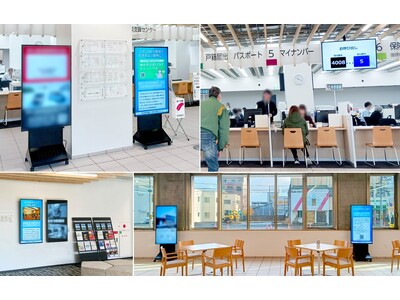 当社が設置したデジタルサイネージは、庁舎内の案内情報や行政からのお知らせを視認性高く分かりやすく発信することを目的としています。これにより、来庁者が必要な情報に迅速にアクセスでき、窓口業務の効率化や来庁時の利便性や満足度の向上に寄与しています。また、当社の広告・番号案内事業との連携により、地域企業や観光情報などの発信も可能となり、庁舎内外での情報流通の活性化にも寄与しています。