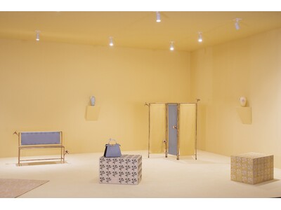 雄大なユリが咲き誇り、エレガントなブロンズ製のベンチ、オケージョナルチェア、ルームディバイダー、そして照明付き壁灯が配置されています。これらには、フェンディの象徴である「セレリア(Selleria)」ステッチのエンボス加工が施されており、インダストリアルクラフトと、職人の手仕事の間の境界線を曖昧にしています。デザインの着想源は、アールヌーボー、アールデコ、モダニズムといった様々なスタイルが交錯した「狂騒の20年代」です。作品にはフェンディのレザー職人の大胆な技が光り、「クオイオ ローマ(Cuoio Romano)」レザーを平面に貼り付け、メゾンのシグネチャーである「セレリア」ステッチで仕上げられています。また、モジュール式のベンチやキューブテーブルのシリーズは、特注のエンボス加工セラミックタイルで構成されており、手彫りの蘭の絵柄(タブロー)や、柔らかい色合いで釉薬をかけた「FF」モノグラムタイルが散りばめられたユリのモチーフが再現されています。ムラーノ(Murano)島の職人による口吹きの不透明なガラス花瓶は、コレクションの色彩や花柄モチーフを映し出しています。これらは、ヴァレッセの幻想的な花々をタイルのように表現したCC-タピス製の手作業で立体的に仕上げたウールラグとともに展示され、すべてが一体となって、コニー・ヴァレッセが思い描く豪華で装飾的なフェンディのサロン、360度に広がるその世界観を際立たせています。