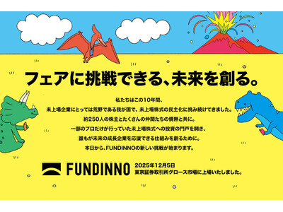 株式会社FUNDINNO(本社:東京都港区、代表:柴原 祐喜/大浦 学、第一種金融商品取引業者 関東財務局長(金商)第2957号、以下「当社」)は、本日2025年12月5日、東京証券取引所グロース市場へ新規上場したことをお知らせします。
