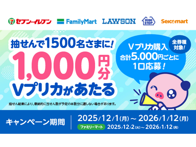 ライフカード株式会社(代表取締役社長:増井 啓司)が発行するVisaプリペイドカード「Vプリカ」について、2025年12月1日(月)より実施するコンビニを対象としたキャンペーンをお知らせします。