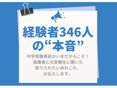 『朝日みつかるナビ』の公式LINEでは、中学受験を終えた346組の「先輩親子」から寄せられたアンケートをもとに、この時期だからこそ響く受験を振り返る生の言葉を紹介していきます。
