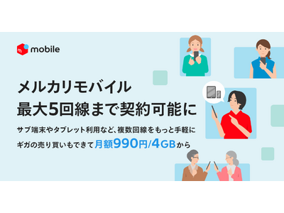 株式会社メルカリ(以下、メルカリ)は、2025年12月4日より、モバイルサービス「メルカリモバイル」において、同一名義で最大5回線までの契約が可能になったことをお知らせいたします(※1)。また、初めて「メルカリモバイル」に入ると、「メルカリ」で使える99%割引きクーポン(最大上限10,000円)と、全プラン初月無料特典がついてくるキャンペーン(※2)も12月23日まで実施中です。